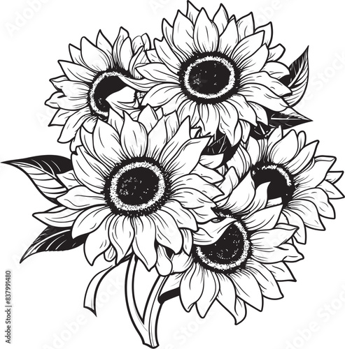 Fototapeta premium Sunflower Brilliance Bouquet Design Art Sunshine Petals Sunflower Vector Icon
