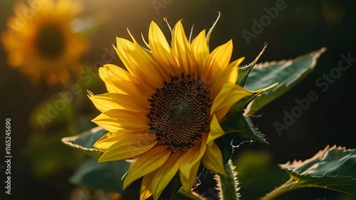 Naklejka premium Sunflower Close-Up, Illustration for International Sunflower Day: Vibrant and...