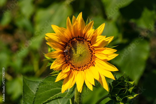 © Vlad Ispas, Fototapeta premium Sunflower field. Agriculture, sunflower seeds growing concept