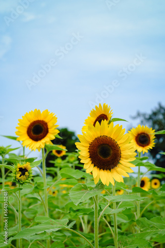 Fototapeta premium Sunflower field at Guanyin District, Taoyuan, Taiwan during the summer season.
