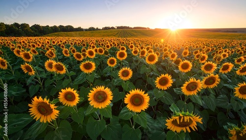 Obraz premium Sunflower field at sunset