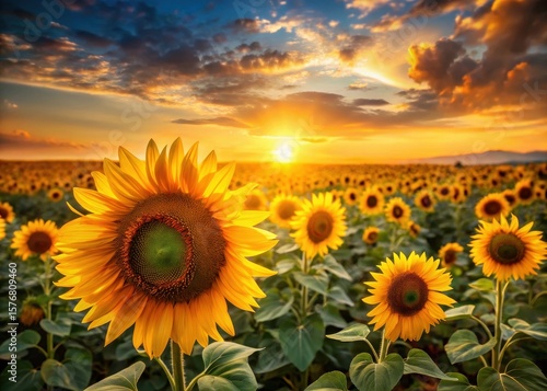 © Praphunsak, Obraz premium sunflower field at sunset