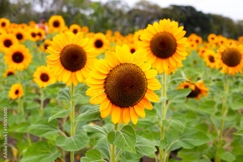Obraz premium Sunflower field, Beautiful summer landscape.