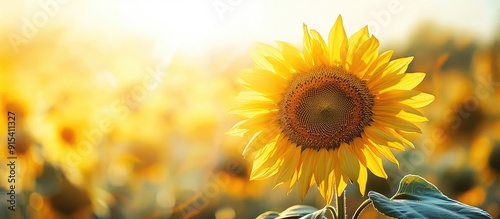 Fototapeta premium sunflower field bloom oil backdrop. with copy space image. Place for adding...