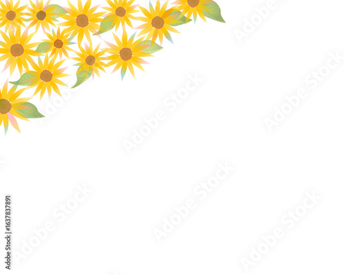© Mami Mami, Obraz premium ひまわり畑 花束 フレーム 背景 Sunflower field bouquet frame background
