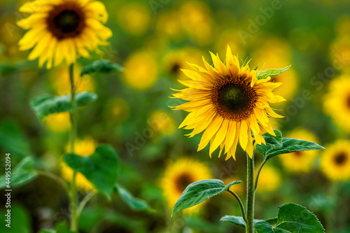 © ako-photography, Fototapeta premium sunflower field in sunshine, bright vibrant flower landscape in summer time