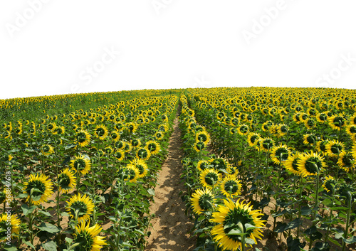 Obraz premium Sunflower field isolated on transparent background, PNG.