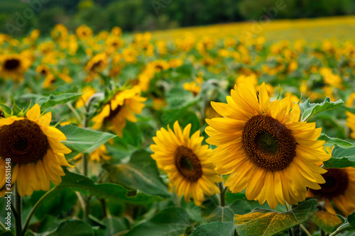 Obraz premium Sunflower field landscape close-up