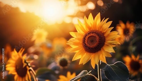 Fototapeta premium Sunflower field, vibrant colors, lush scenery, serene environment, inviting