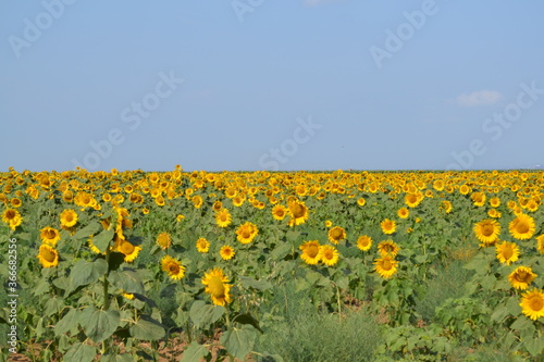© Алекс Орлов, Obraz premium sunflower field with blue sky