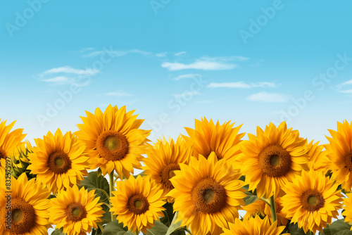 © Pakhnyushchyy, Naklejka premium Sunflower field with cloudy blue sky