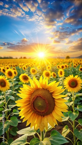 © Ningjing, Obraz premium Sunflower fields swaying gently in the breeze