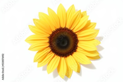 © ThomasLENNE, Fototapeta premium Sunflower flower head photography isolated on white background. Single object clipping path original shadow. Summer garden. Design element. Top view, flat lay