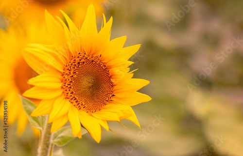 Fototapeta premium Sunflower flower in the field, close-up, selective focus.