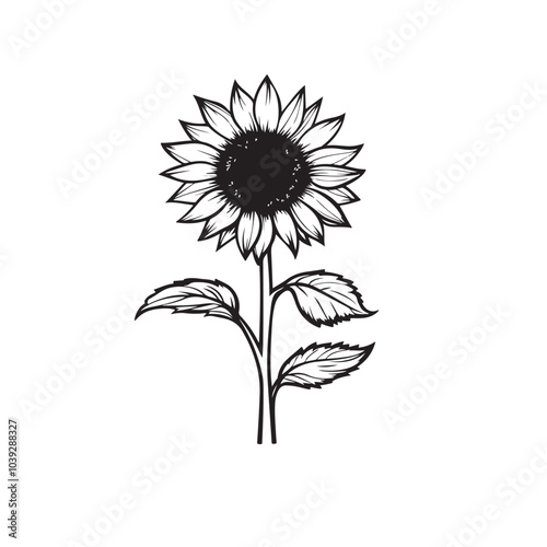 © Alifa Yeasmin, Fototapeta premium Sunflower flower outline illustration coloring book page design, Sunflower flower black and white line art drawing coloring book pages for children and adults