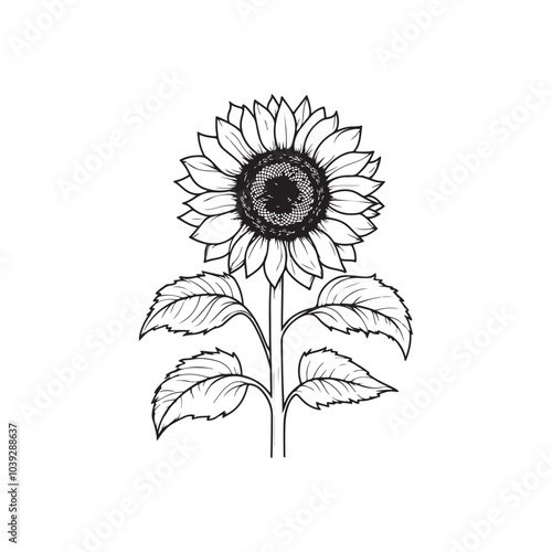 © Alifa Yeasmin, Fototapeta premium Sunflower flower outline illustration coloring book page design, Sunflower flower black and white line art drawing coloring book pages for children and adults