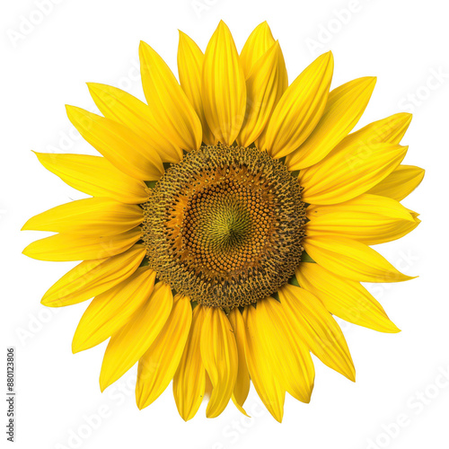 © Lerson, Fototapeta premium Sunflower from above with bright yellow petals, isolated on transparent