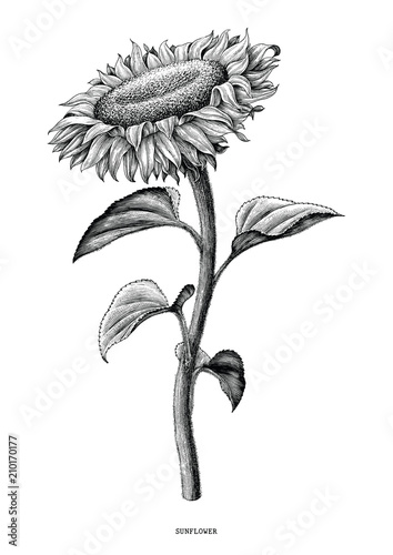 © channarongsds, Fototapeta premium Sunflower hand drawing black and white vintage clip art isolated on white background