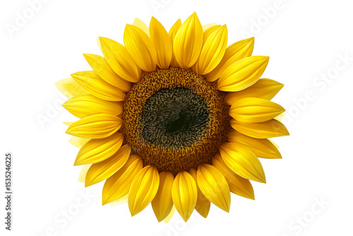 © siam, Fototapeta premium Sunflower head blooming with bright yellow petals, gleaming against transparent background