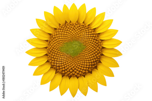 © Krtola , Fototapeta premium Sunflower head showing yellow petals surrounding disk florets with a green center, isolated on transparent background