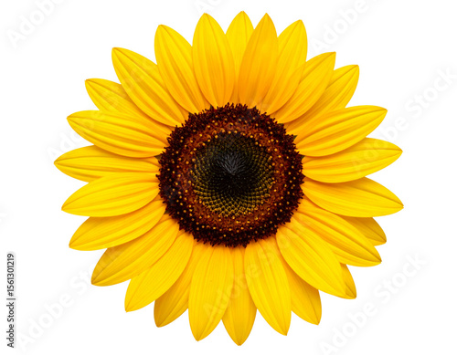 © Shamim, Fototapeta premium Sunflower Head with Visible Seeds and Petals in Top View, isolated on a transparent background