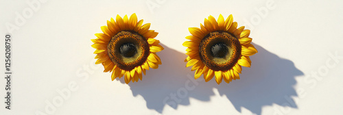 © Artem, Fototapeta premium Sunflower heads displaying vibrant colors and soft shadows on a bright background