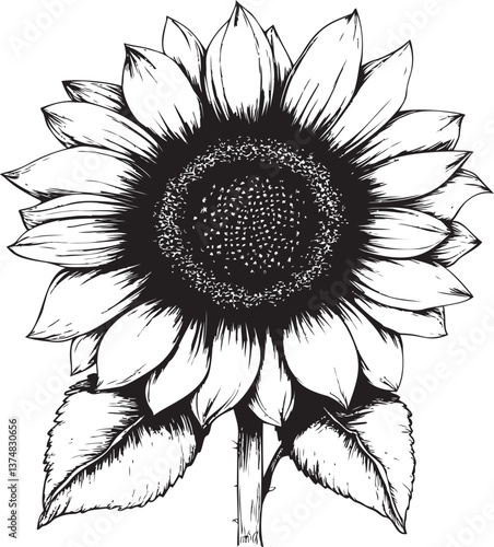 © labirint, Fototapeta premium Sunflower in black and white with detailed