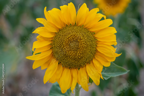 © Decker Photography, Fototapeta premium Sunflower in field at sunset