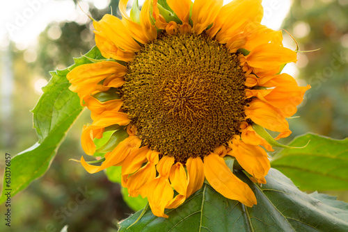 © Natalia Navodnaia, Naklejka premium Sunflower in garden. Close up