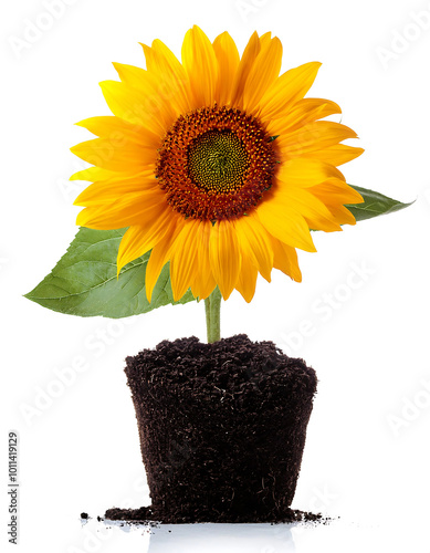 Obraz premium Sunflower In Soil on white