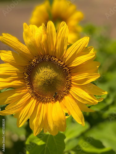 Fototapeta premium Sunflower in the garden in the sunny day. Beautiful yellow big flower with...