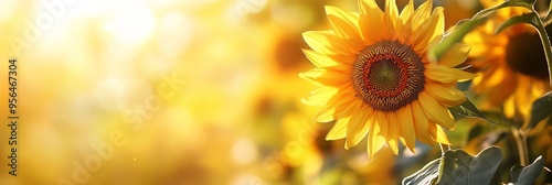 © Vugar, Fototapeta premium Sunflower in the Sun with Golden Yellow Color and Blurred Background. AI generated illustration.