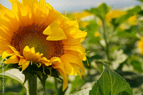 Fototapeta premium sunflower in the wind within a sunflowers field