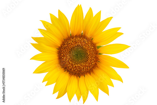 Fototapeta premium Sunflower isolated on a white background. Top view. Flat lay