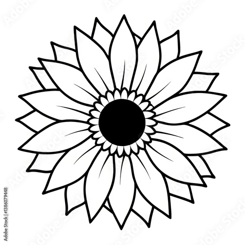 © MDRAYHAN, Fototapeta premium Sunflower Line Art on White Background