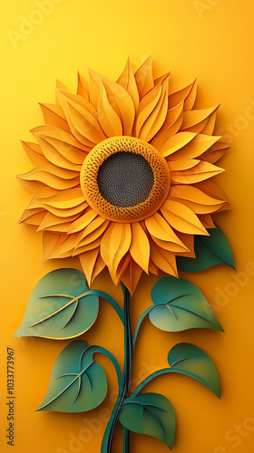 © ak159715, Obraz premium Sunflower logo 3d vector papercut