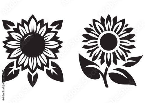 © Adobe design, Fototapeta premium Sunflower logo icon vector illustration, Sunflower hand drawn vector collection, set of black and white flowers