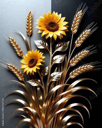 © CIZORTWIST , Obraz premium Sunflower on black background