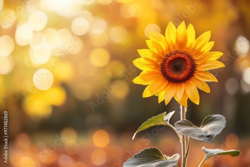 © MUdaylah, Naklejka premium Sunflower on the background of the autumn landscape with bokeh with generative ai