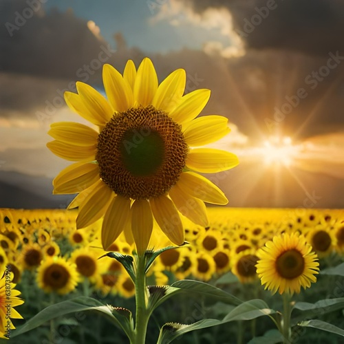 © Nabila, Obraz premium sunflower on the field generative AI tools