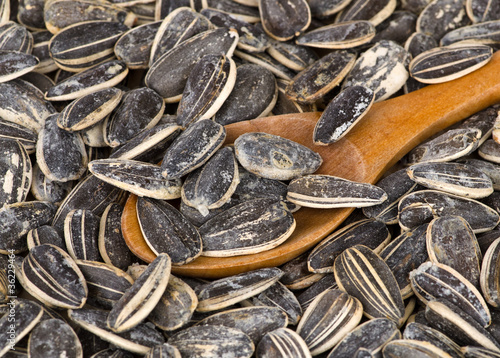 © asese, Fototapeta premium Sunflower seeds and wooden spoon