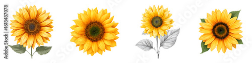 Fototapeta premium Sunflower Set: Four Yellow Blooms on White Background