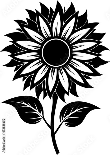 Fototapeta premium Sunflower silhouette vector black , white background
