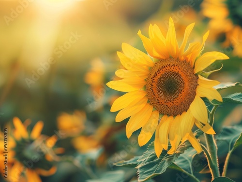 Fototapeta premium Sunflower Splendor: A Vibrant Display of Agricultural Beauty in the Summer...