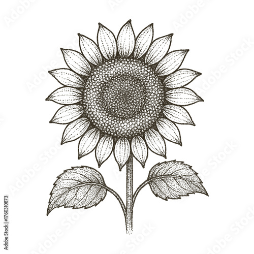 © stock, Fototapeta premium Sunflower Vintage Line Art Botanical Illustration in Dotwork Style