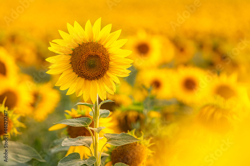© danieleorsi, Fototapeta premium Sunflower with blurred light sunshine during the sunset