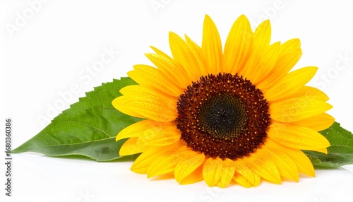 © sala, Obraz premium Sunflower with Dewdrops, isolated on white background