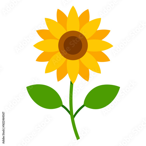 © TahrinAkther, Obraz premium Sunflower with green leaf vector on white background.