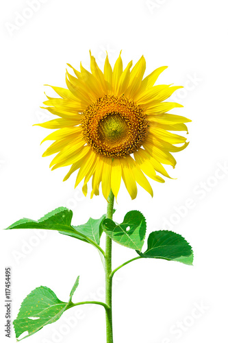 © subinpumsom, Fototapeta premium sunflower with green leaves. Isolated over white background