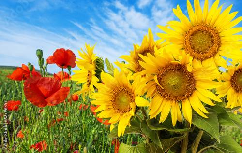 © Vera Kuttelvaserova, Fototapeta premium sunflowers and poppies